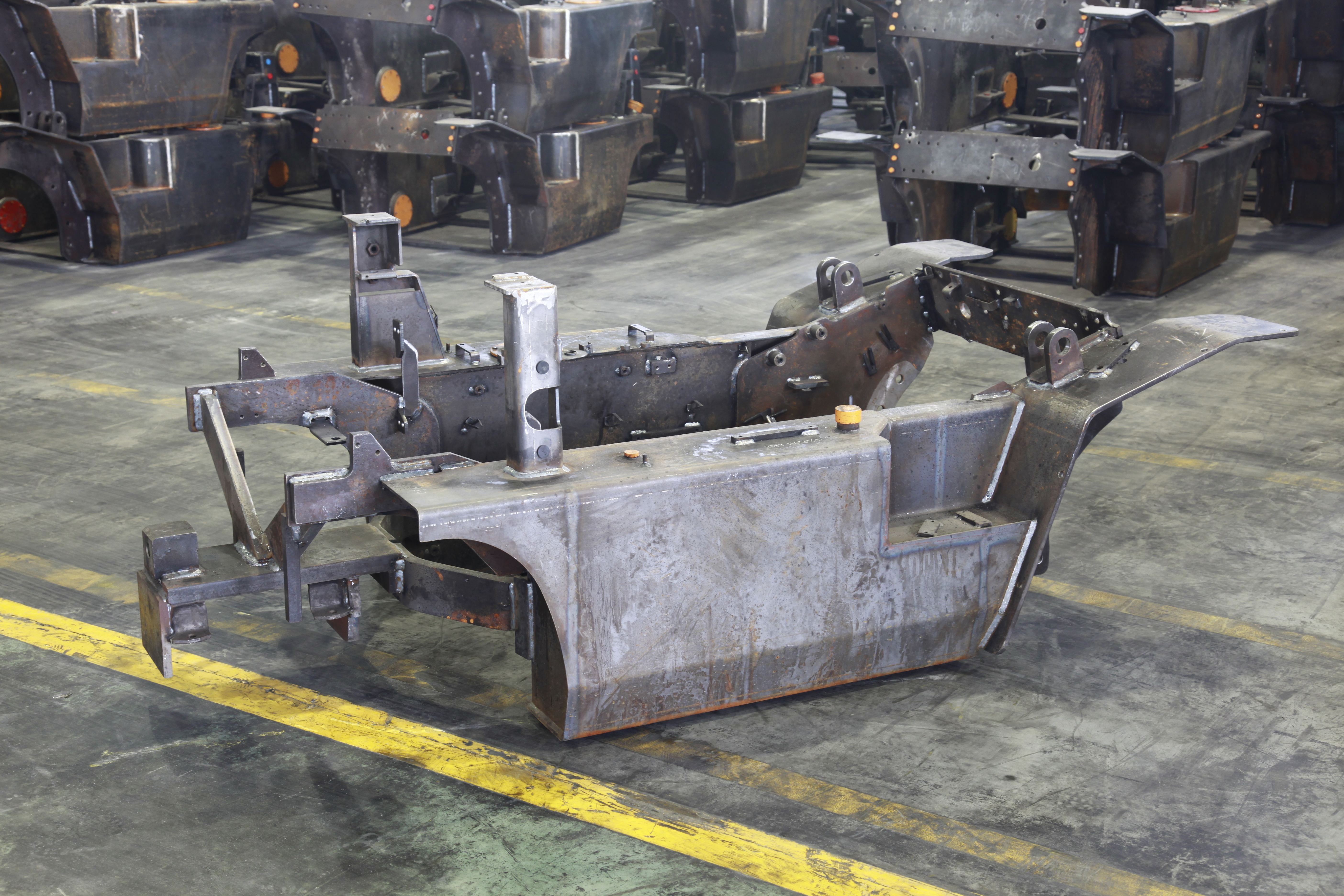 工程機械部件:以中厚板/型材的下料、成型、焊接和表面處理為主。目前我司配備了一條年產(chǎn)量20,000套車架的專業(yè)生產(chǎn)流水線,已為國內(nèi)外知名叉車企業(yè)提供配套加工服務。